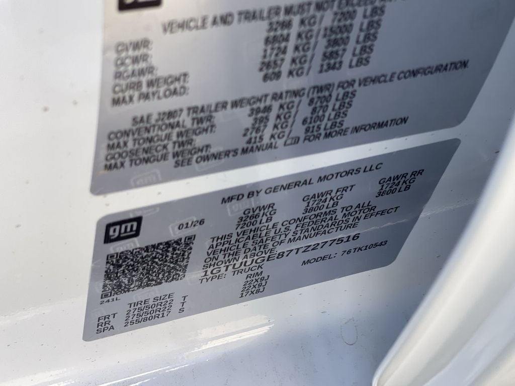Technology Package: Multicolor 15" Diagonal Head-Up Display; Rear Camera Mirror. Preferred Equipment Group 5SA: Trailer Side Blind Zone Alert; Chrome Wheel to Wheel Assist Steps; Power Sliding Rear Window with Rear Defogger; Ultrasonic Front and Rear Park Assist; Trailer Camera Provisions; Electric Rear-Window Defogger; Theft Deterrent System (unauthorized Entry); Chrome Header with Signature Denali Chrome Grille; Front Rain-Sensing Wipers; Heavy-Duty Air Filter; 120-Volt Interior Power Outlet; Heated Driver and Front Outboard Passenger Seating; Wireless Charging; Color-Keyed Carpeting Floor Covering; OnStar Services Capable; Heated 2nd Row Outboard Seats; Power Front Passenger Windows with Express Up/down; Premium Bose 7-Speaker Sound System; Power Rear Windows with Express Down; Integrated Trailer Brake Controller; HD Surround Vision; Ventilated Driver and Front Passenger Seats; Power Rake and Telescoping Steering Column; Keyless Open and Start; Perimeter Lighting; Push Button Start; LED Cargo Area Lighting; Remote Vehicle Starter System; In-Vehicle Trailering System App; Hill Descent Control; Floor-Mounted Center Console; 170 Amp Alternator; Bed View Camera; Auxiliary External Transmission Oil Cooler; Rear Cross Traffic Braking; GMC Pro Safety; Trailering Package; 2 USB Ports; 2 Charge/data USB Ports Inside Center Console; Chrome Recovery Hooks; Denali Premium Suspension with Adaptive Ride Control; Steering Wheel Audio Controls; 2 type-C Charge-Only Rear USB Ports; Universal Home Remote; 2-Speed Transfer Case; Deep-Tinted Glass; Spray-On Pickup Bedliner with GMC Logo; SiriusXM with 360L Trial Subscription; Hitch View; Power Front Windows with Driver Express Up/down; Rear Pedestrian Detection; Wi-Fi Hotspot Capable; Rear Wheelhouse Liners; Auto-Locking Rear Differential; Power Door Locks. Denali Reserve Super Package: Super Cruise Wrapped Steering Wheel; GMC MultiPro Power Steps; Power Sunroof; Super C